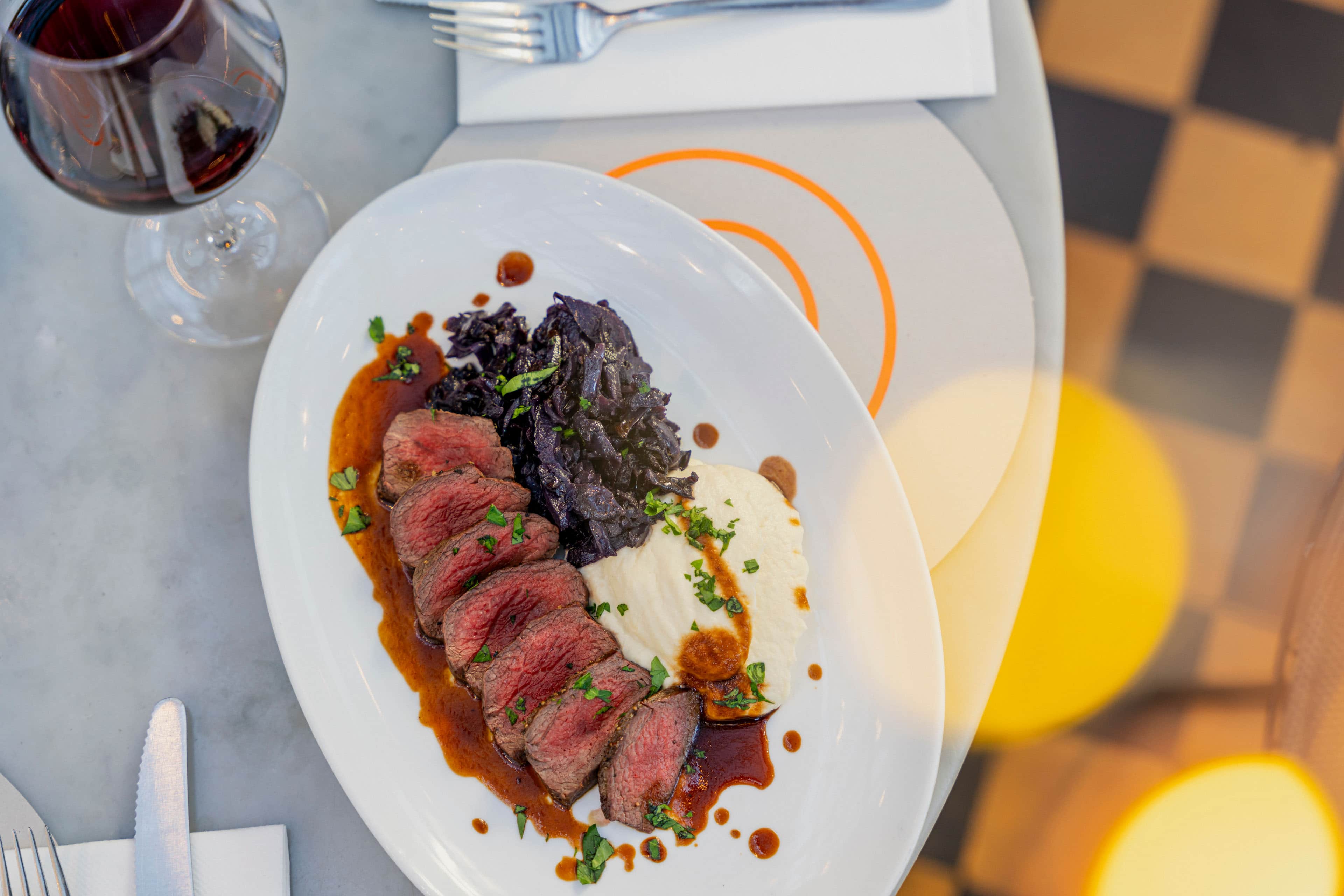 A7R06806 - 2023 - Gees Restaurant & Bar - Oxford - High Res - Festive Foods Venison Loin Celeriac Red Cabbage Juniper Sauce - Web Hero